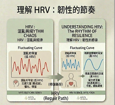 • 核心邏輯: * HRV 高 = 彈性好: 代表副交感神經活躍,身體能隨時應付壓力並快速恢復平靜。(可以看下圖)