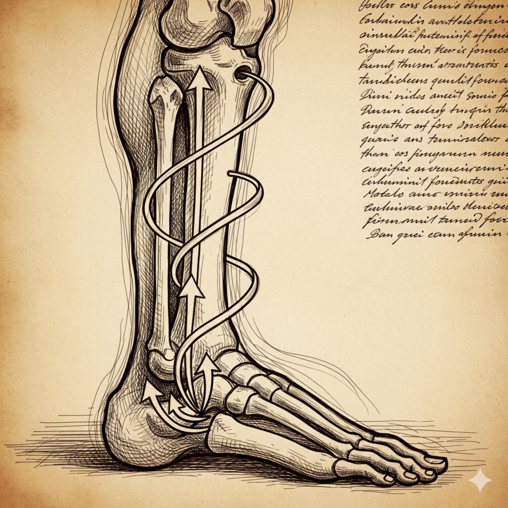 1. 螺旋力線:脛骨旋轉與足弓的聯動
