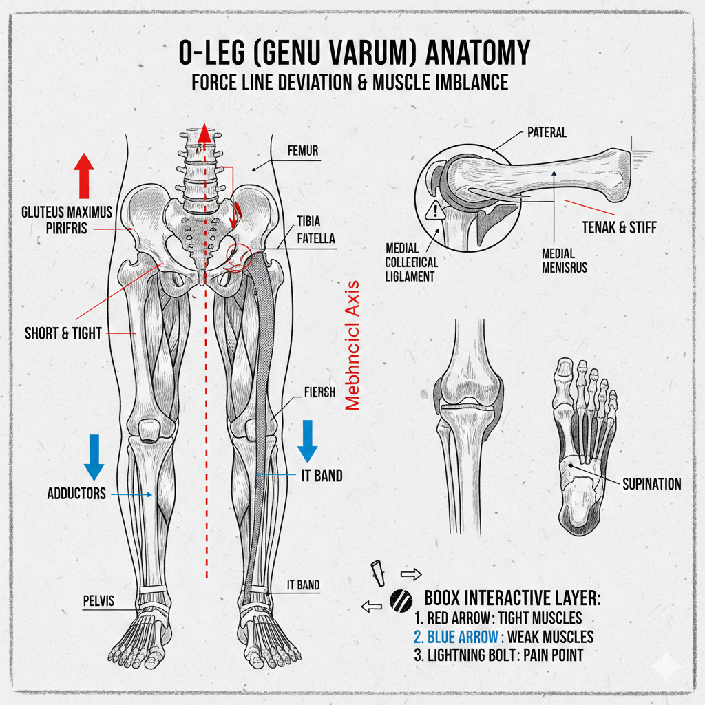 我們的雙腿是身體的根基。當根基歪斜,脊椎與肩膀就會產生代償性的緊繃。O型或X型腿不只是美觀問題,它代表著你的能量在膝蓋處產生了「斷點」。透過解剖學,我們要找回從腳跟直通骨盆的穩定力量。
